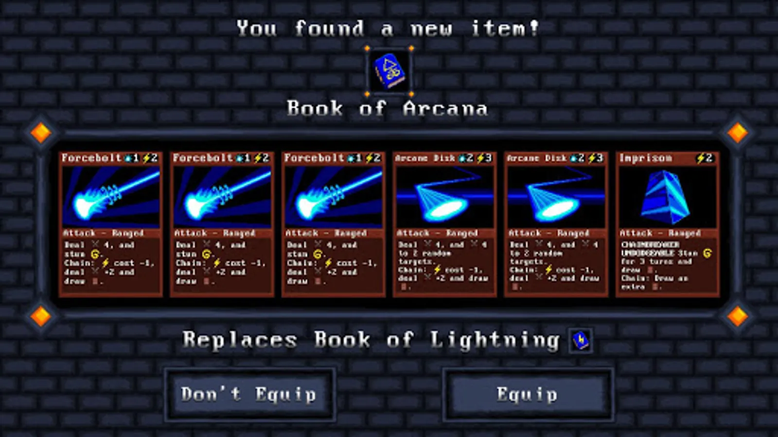 Unlock new items by defeating mighty bosses. There are dozens of different pieces of equipment and items for each class to further customize your heroes; granting them new cards and abilities.