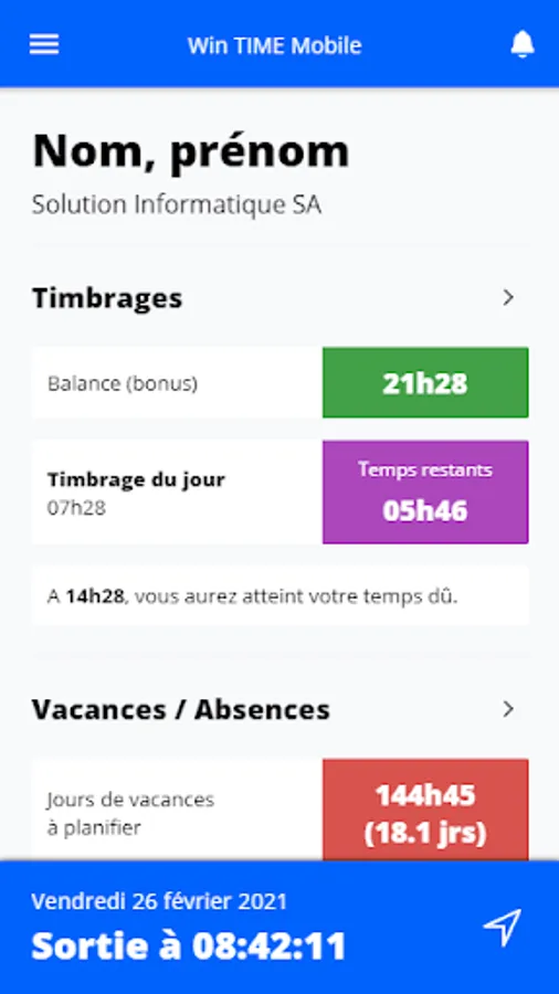 The application allows employees of a company to stamp as well as request time off from their supervisor.