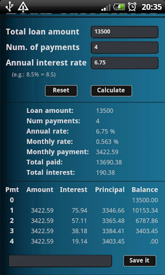The loan calculator is simple calculator for annuity, differentiated and fixed payments.