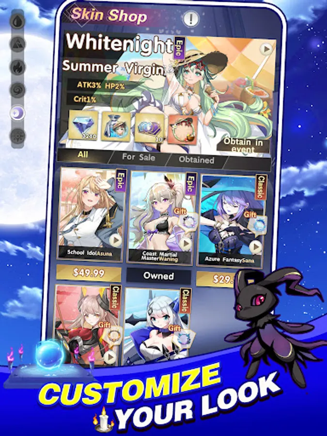 is an Monster x Anime girls evolution card game with epic IDLE gameplay, Various Elves and goddess wait for collected and trained. Explore the massive fantasy elves world with power of domination. Summon and evolved your goddess and challenge others from worldwide.
