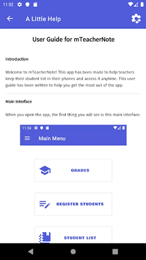 mTeacherNote aims to help teachers keep their student list in their phones. Teachers can register students, add and customize grades and manage students. The students are kept in a database and this database can be backed up to phone storage to restore later. They can view detailed info about registered students. A user guide is included to help first-time users. I hope it is simple and fun to use for teachers.