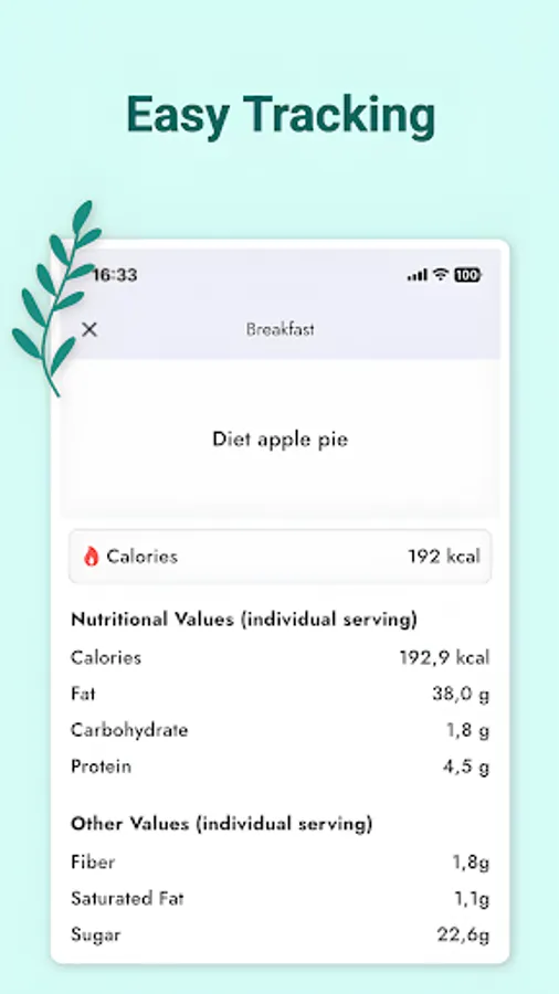Nutrition info was given in a very detailed manner (carbohydrates, proteins, fats, etc.).