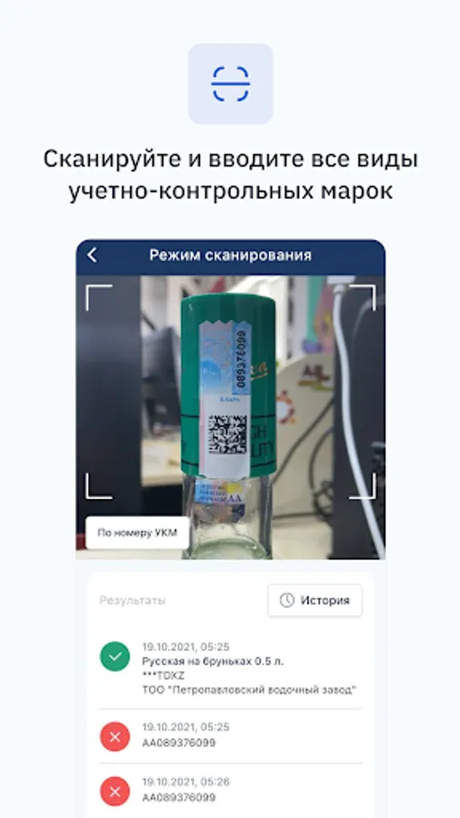 «Wipon Pro for terminals» is a certified system to read information from accounting-control marks of alcohol products in the Republic of Kazakhstan, installed on portable data collection terminals.