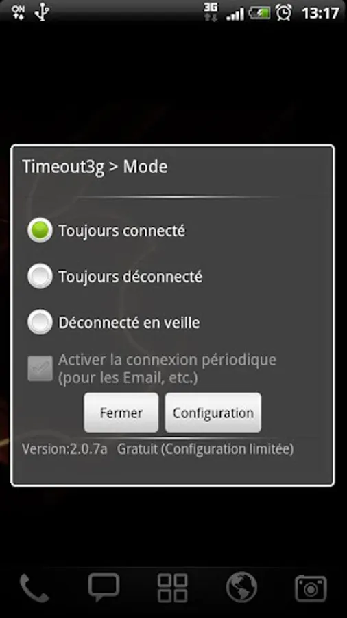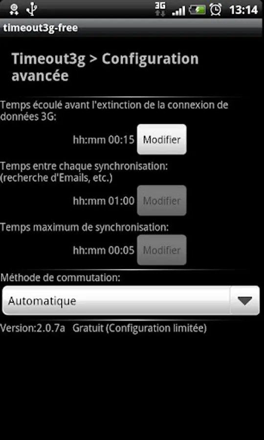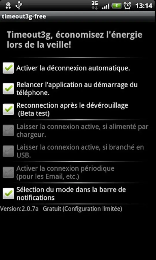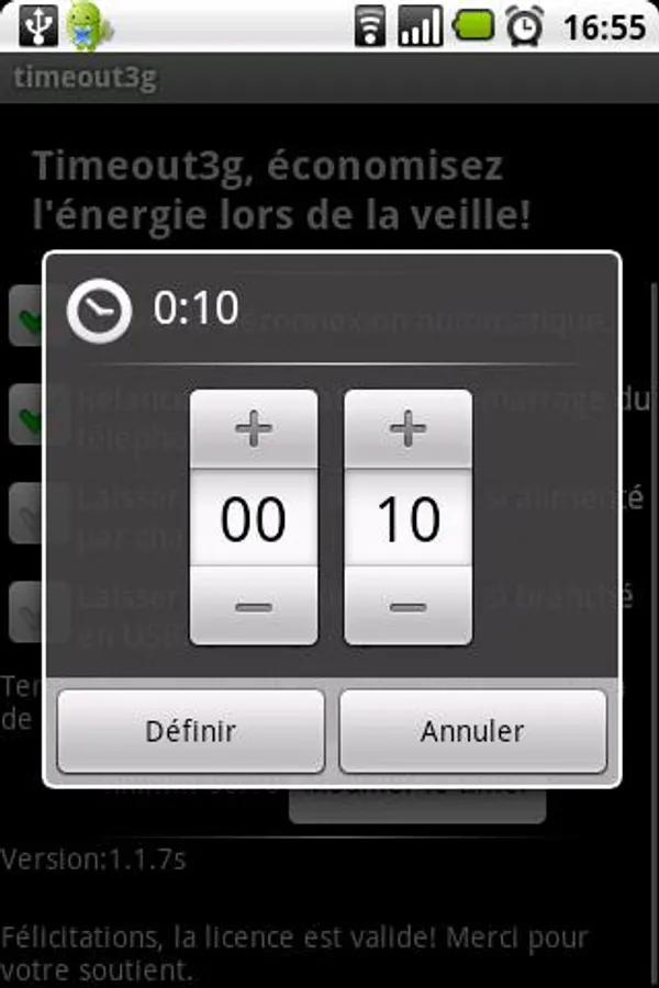 If you are using a taskiller, then please add timeout3g to the safe list or it will not work: do not kill timeout3g.