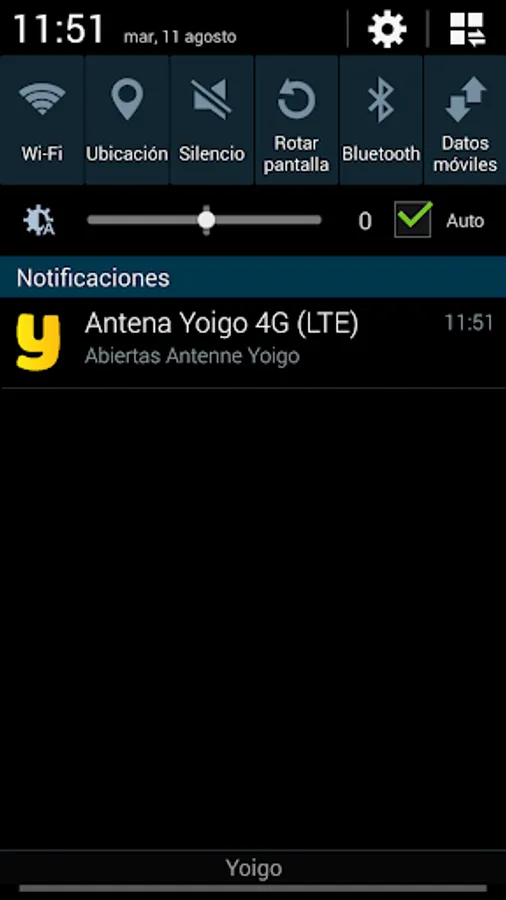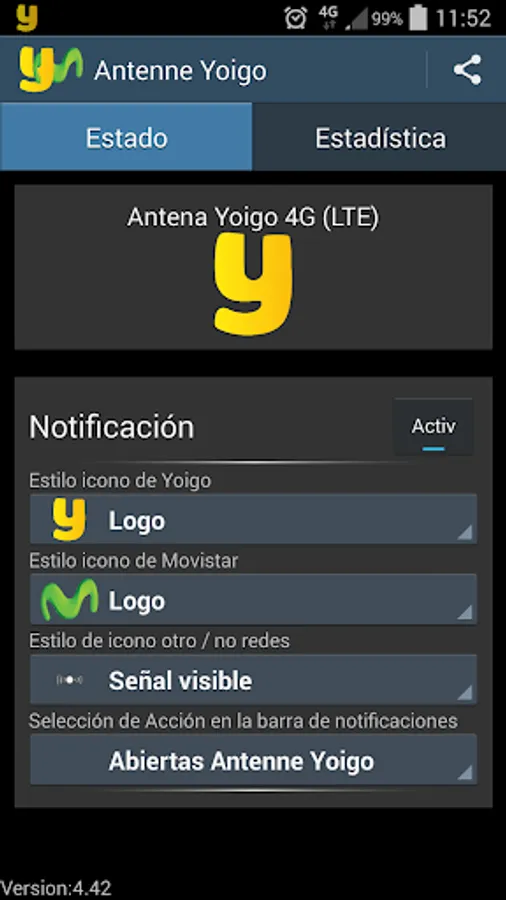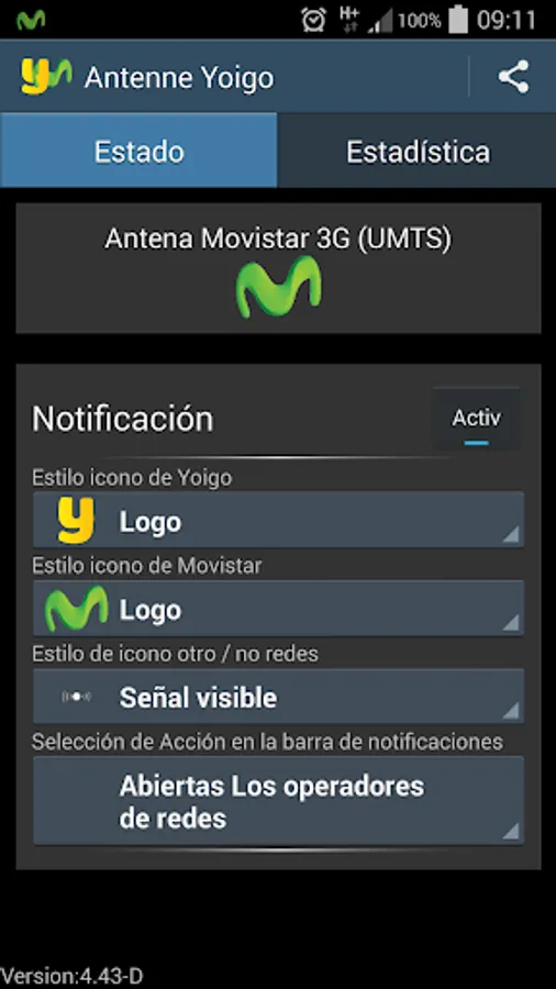 Displays an icon in the notification bar to indicate if it is connected to an antenna of the operator Yoigo (TM) or Movistar (TM) or Orange (TM).