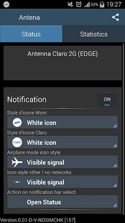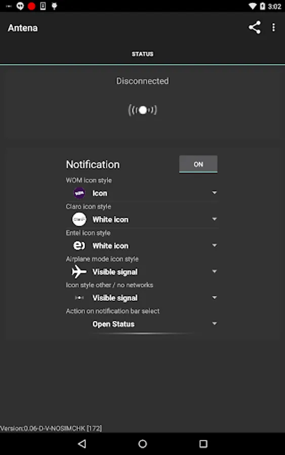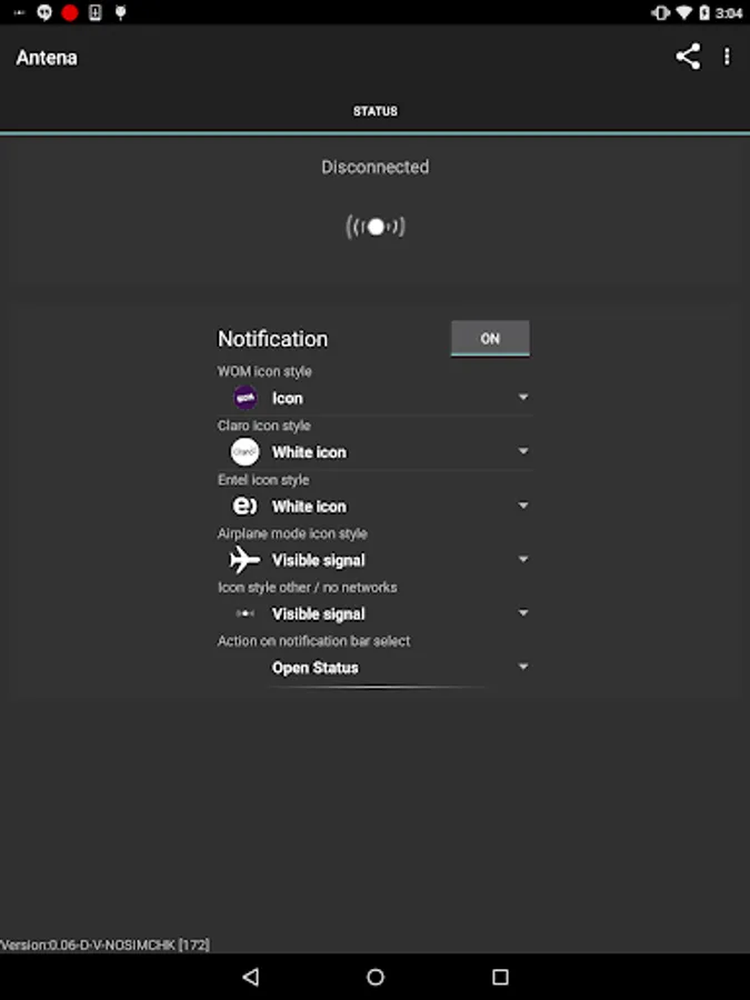 Displays an icon in the notification bar to indicate whether it is connected to an antenna or WOM ™ operator Claro ™ or Entel ™.