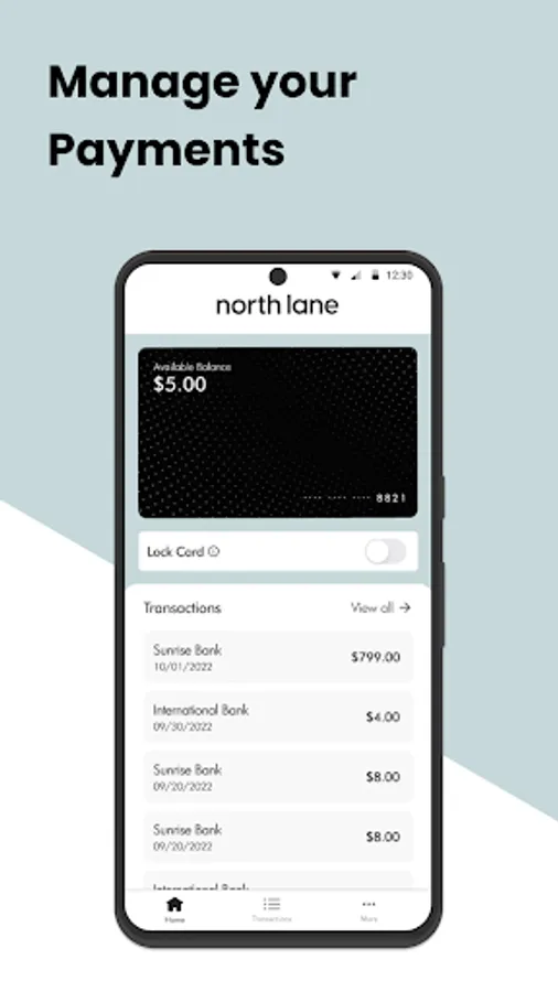 The North Lane Mobile app (formerly Wirecard (US) Mobile app) lets you manage your North Lane prepaid card easily from your smartphone. The app provides you with important and useful functions such as: