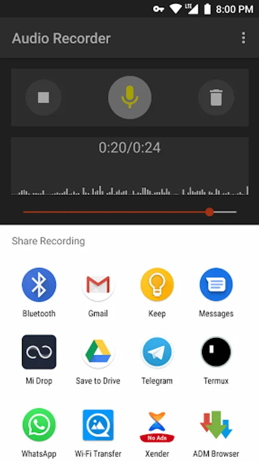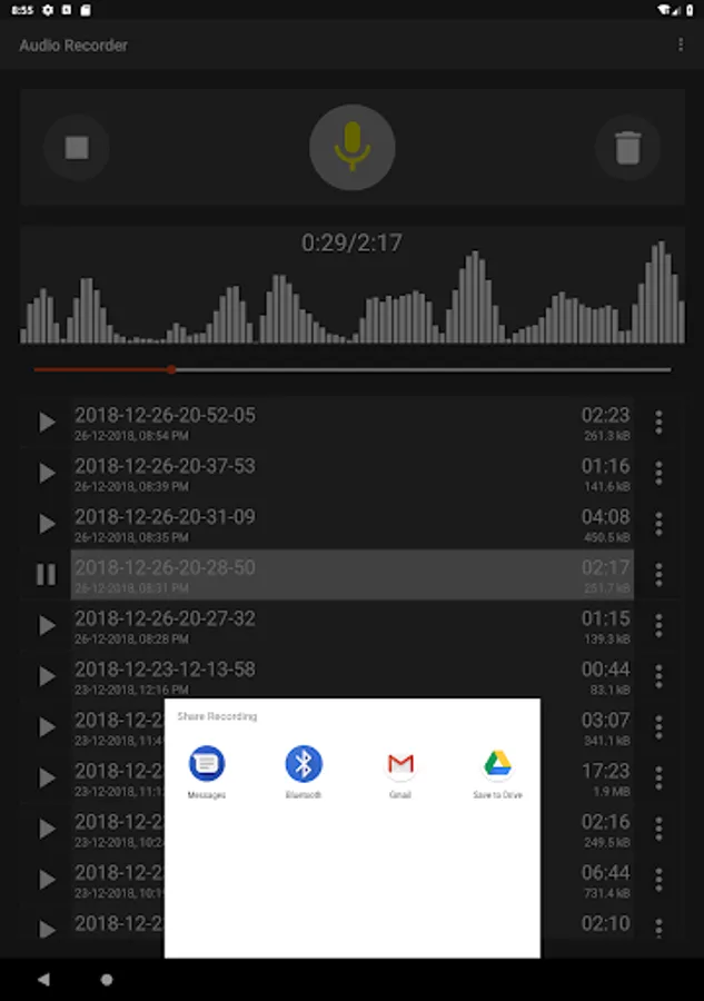 User can share the recordings on available sharing options (Bluetooth, email ... etc)