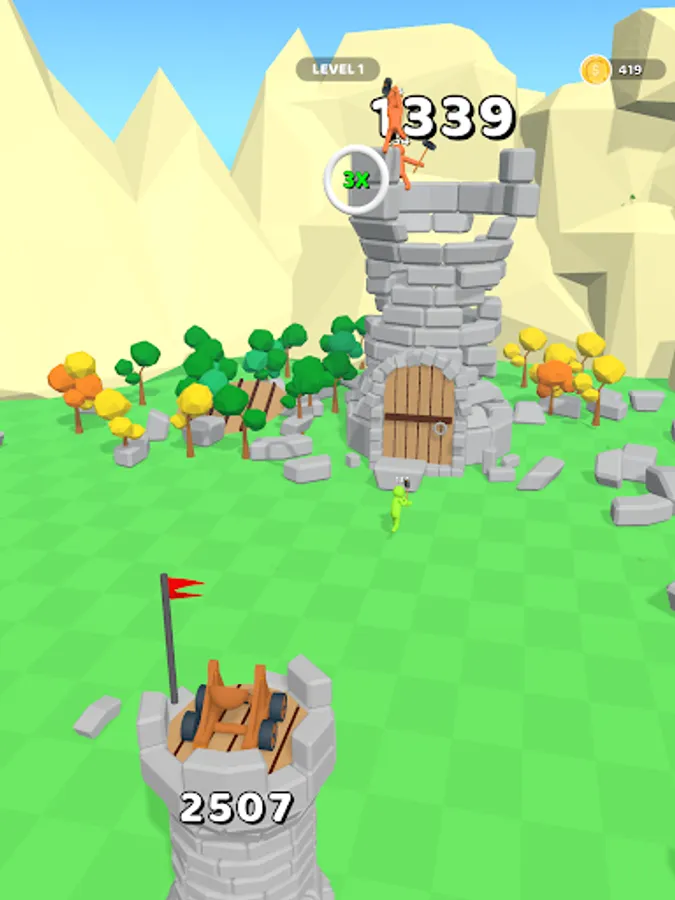 Demolish Gang is a super fun game where you throw stickmen from a catapult to destroy the enemy tower!