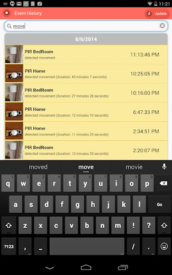 - After in event screen the motion events are loaded, they will be overlaid on trend screen similar to iOS version of this app, to allow identifying reason behind temperature/humidity changes (such as door open/close).