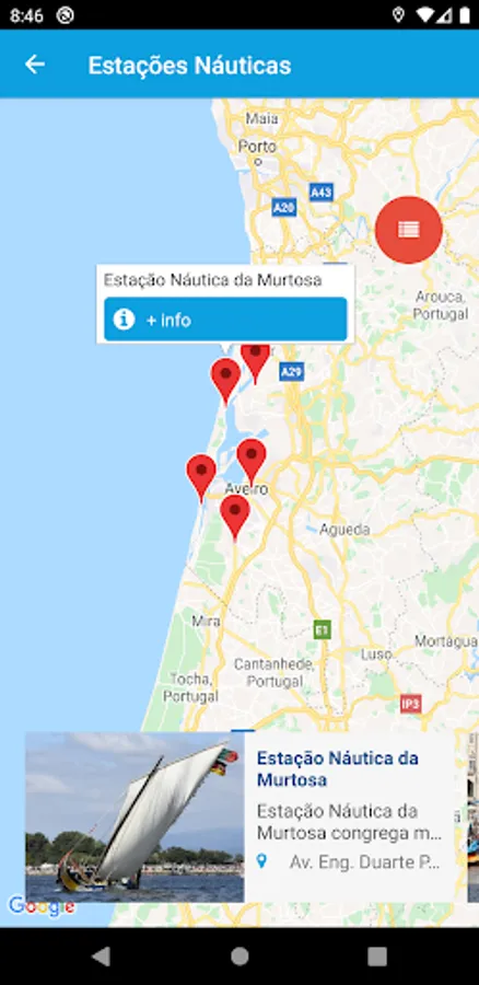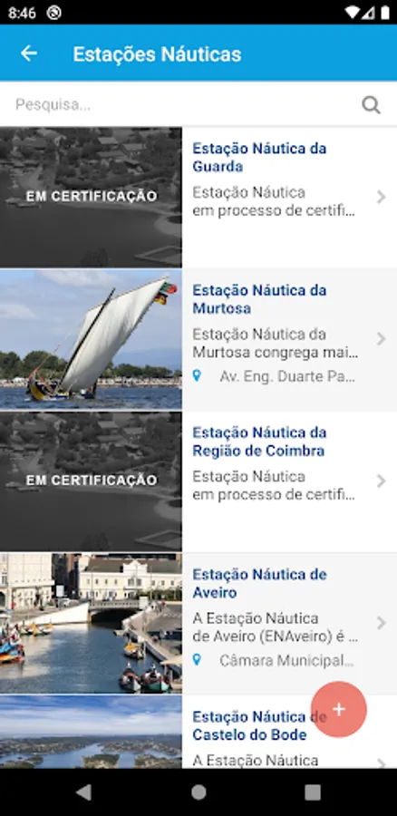 Four maritime stations are represented: Figueira da Foz, Ílhavo, Nazaré and Peniche and 8 nautical stations: Aveiro, Castelo do Bode, Estarreja, Ílhavo, Murtosa, Oeste, Ovar and Vagos.