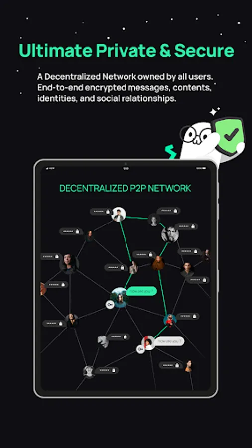 All messages, contents, identities, and social relationships are end-to-end encrypted.