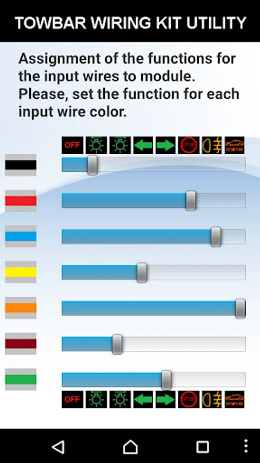 This app. is a tool to write the exact settings of electronic device for the lighting system for towbars.