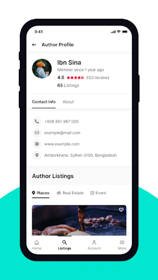 – Visitors can get information such as contact info, messaging, phone call, location, listing overview, and so forth.