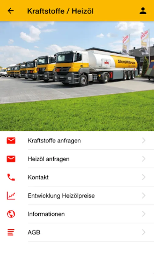 Do you need fuel, heating oil, lubricants or AdBlue®? No problem. With our app you can easily inquire about these products without obligation or order them directly. To place an order, simply fill in the latest delivery date and select order. Our teams in the respective departments will contact you shortly. If you have any questions, please call us. Of course, the contact details of the respective departments are stored for each area.