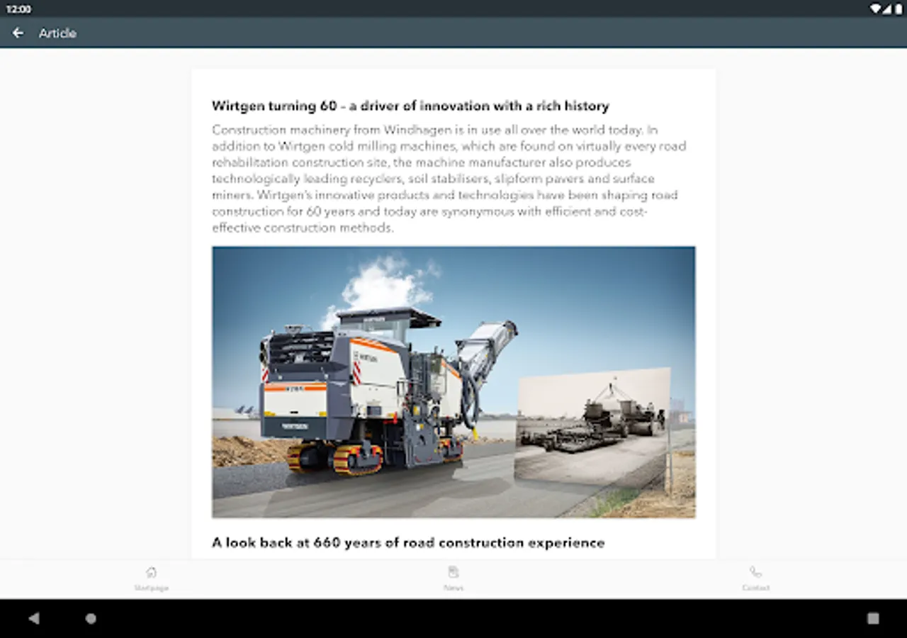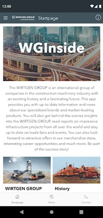 The Wirtgen Group is an international group of companies in the construction machinery industry with an exciting history and a fascinating future. This app provides you with up-to-date information and news about our specialized brands and market-leading products. You will also get behind-the-scenes insights into the Wirtgen Group, read reports on impressive infrastructure projects from all over the world and stay up to date on trade fairs and events. You can also look forward to attractive offers in our merchandise store, interesting career opportunities and much more. Be part of the success story!