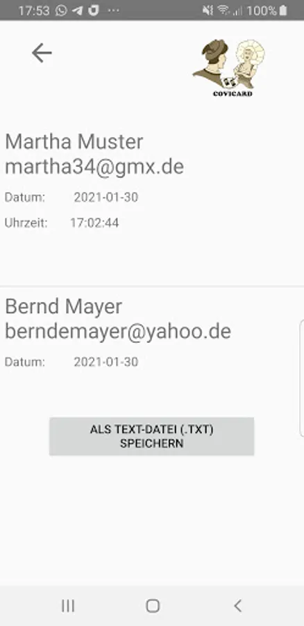 Scanning from contact card saves first name, last name, email address or phone number, date and time of the encounter.