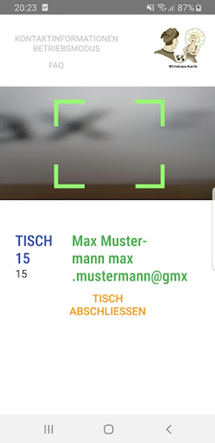 Two operating modes: restaurateur scans the guest's guest card (standard) - guest scans the card himself when entering and leaving the restaurant.