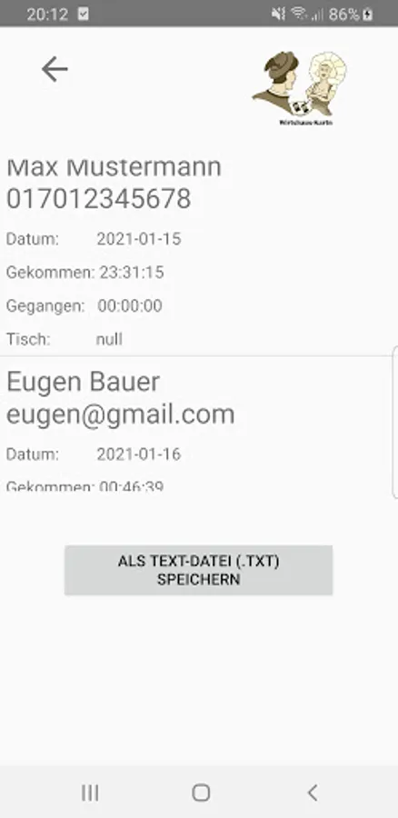 Guest card ("Wirtshaus-Kartn") works on paper as well as a photo on the mobile phone.
