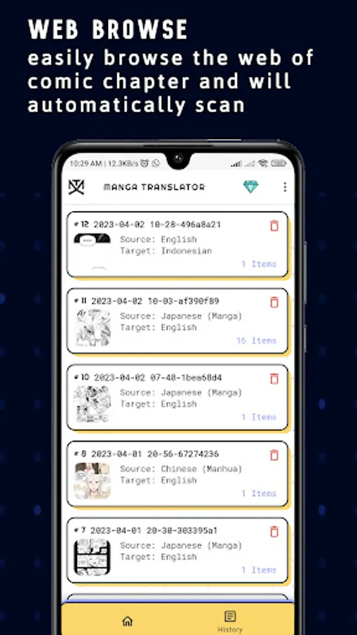 - Automatically save result locally and saved into History