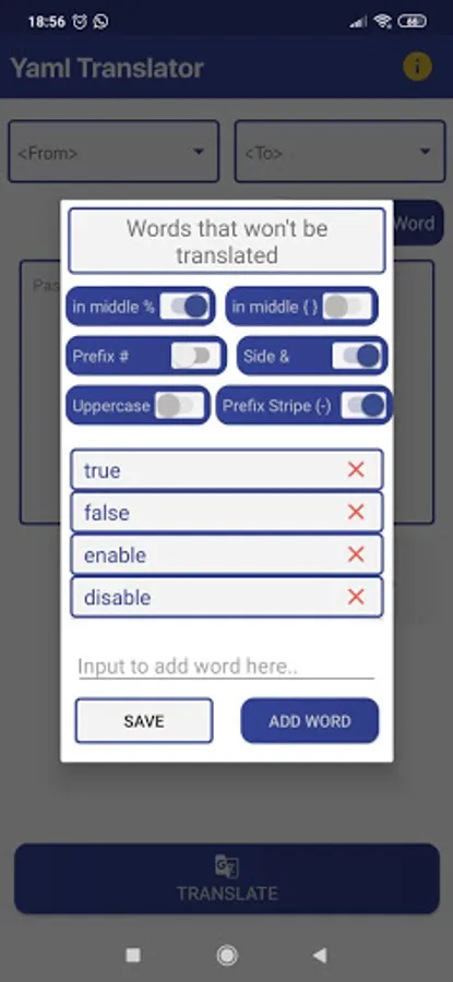 - Add words that won't be translated