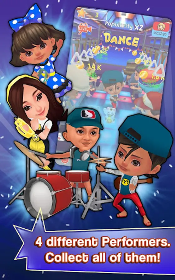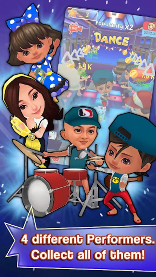 An idle clicker game. Just tap your characters to start dance and entertain everyone!