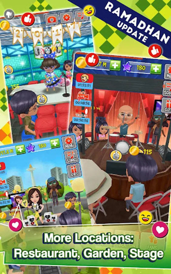 - Lots of different audiences in each location you can unlock and upgrade. Invite and level up all of them to be your guest and loyal fans.