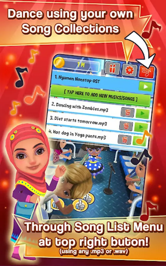 Shake your phone or tablet and body, using your own favorite hit songs, from pop to dangdut!
