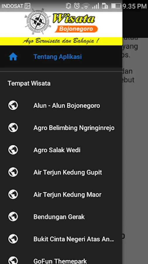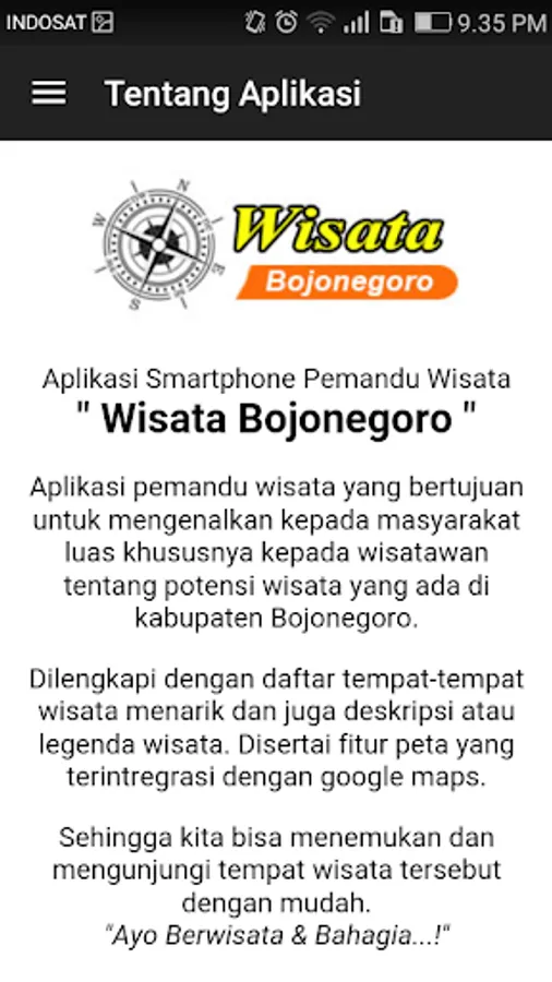Application tour guide that aims to introduce to the public especially to tourists about the tourism potentials in Bojonegoro.
