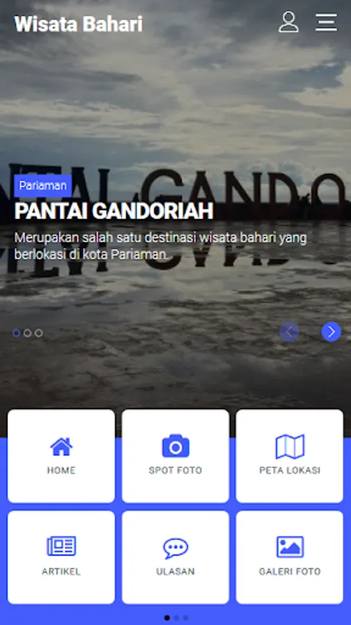 This application offers dynamic features for users, where users can submit articles, photos, videos and other information about marine tourism in the city of Pariaman.