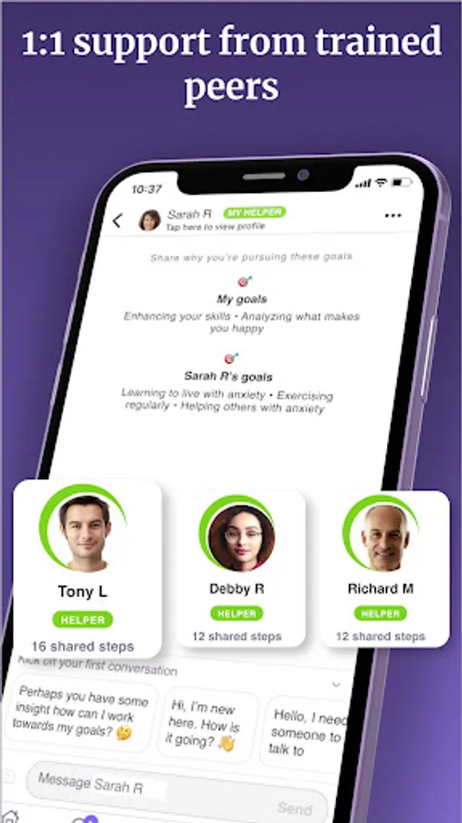 * Connect anonymously with peers trained to support you