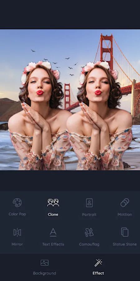 Background Changer: Change the background of your photos to any image you want, or choose from our library of stunning backgrounds.