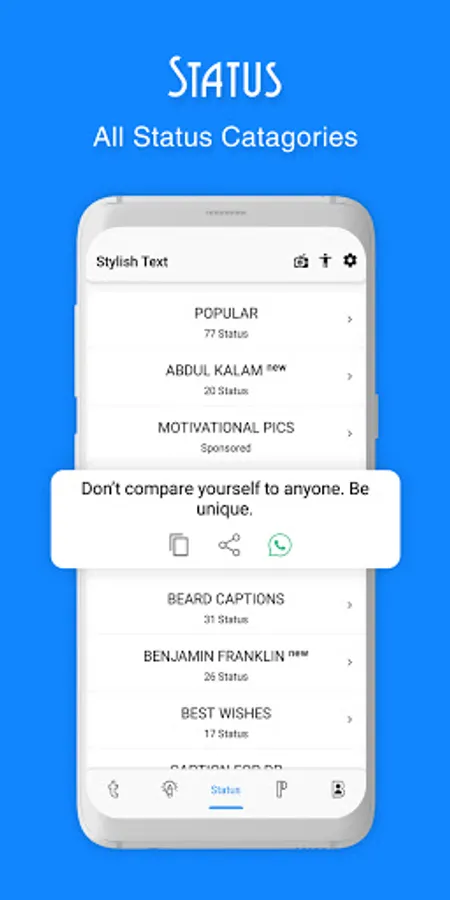Stylish Text App provides limitless possibilities to generate different text styles and numbers to flaunt your style of writing!