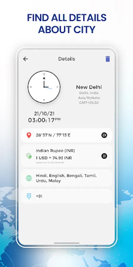 It's a small world after all and you may need to know date and time of other cities in the world. World clock can serve that purpose for you.