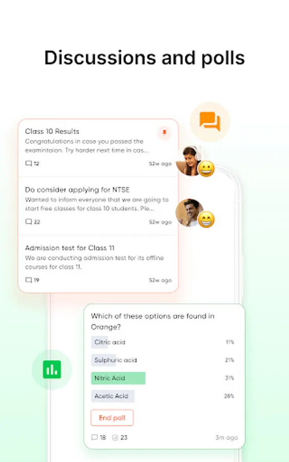 Start discussions with or among students for resolving doubts anytime after the class. Stop juggling across WhatsApp groups to keep a track of students’ doubts and queries. Use the discussion board to post-course updates or any class-wide announcements.