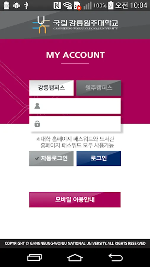 Gangneung National University We provide the following services for the convenience of users of Wonju University.