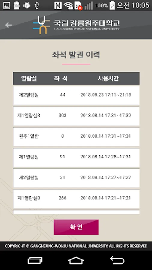 - Confirmation of the use of seats by library self-study facilities