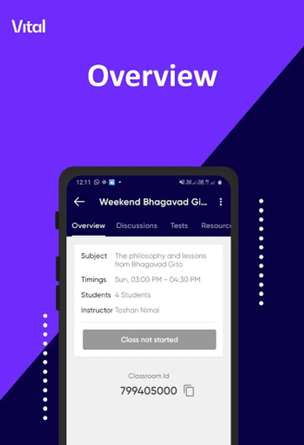 VITAL (Vrindavanchandra Institute of Theology, Arts and Languages) is a platform for teaching various life-enhancing courses to students. This app will greatly facilitate the education of the students.