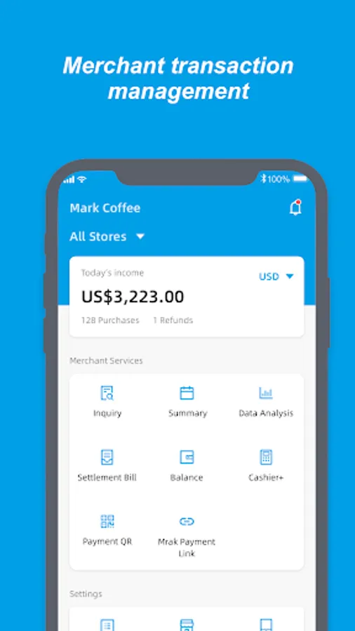 - Gives flexibility to merchants to manage store sales using their smart phone.