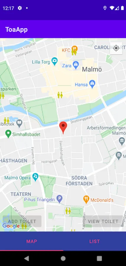 The app allows users to find a toilet in the cities available, currently Malmö. Users can add toilets to the app, add a comment about a particular toilet and note whether they liked the toilet or not. The app contains information such as whether the toilets require payment, are handicapped friendly or have baby changing facilities.