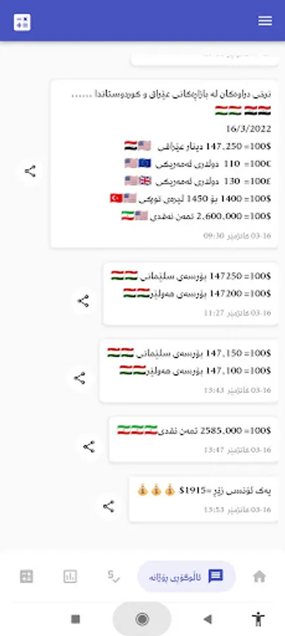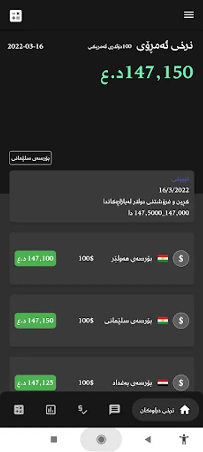 ٦- ئاگاداری نرخی دۆلار بە سات بە سات لە بازاڕەاکنی کوردستاندا