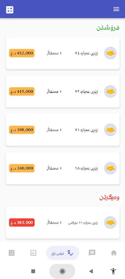 ٤-نرخی فرۆشتن و وەرگرتنی زێڕ