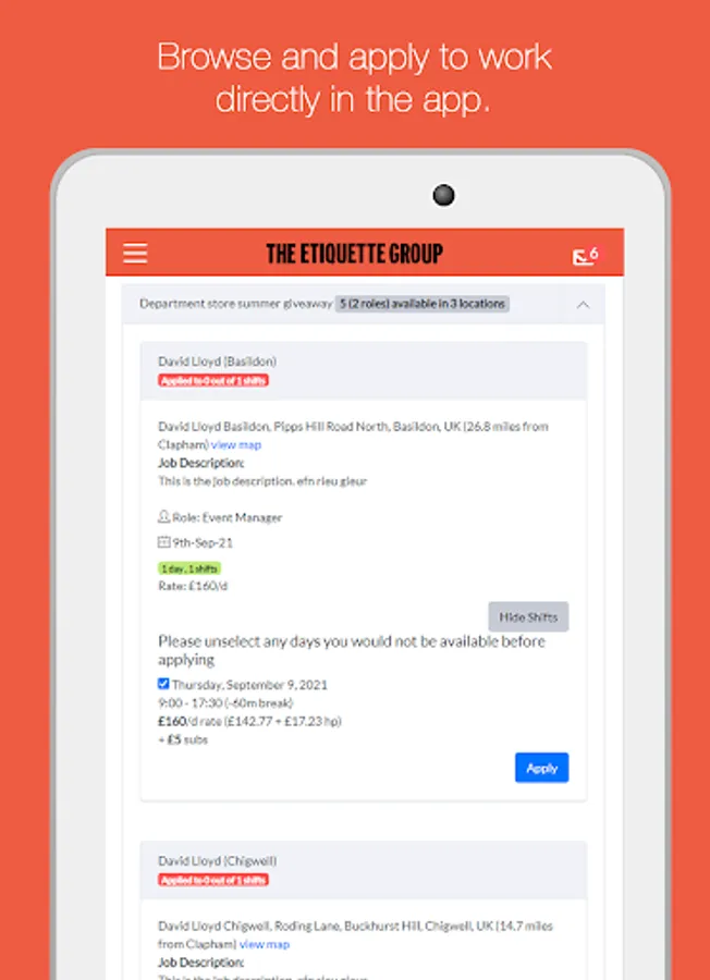 Find hospitality work across the UK using The Etiquette Group app. The Etiquette Group has become the go-to for next-level, reliable hospitality staffing - supplying people with passion, know-how and an excellent work ethic to support some of the UK’s leading events and venues.