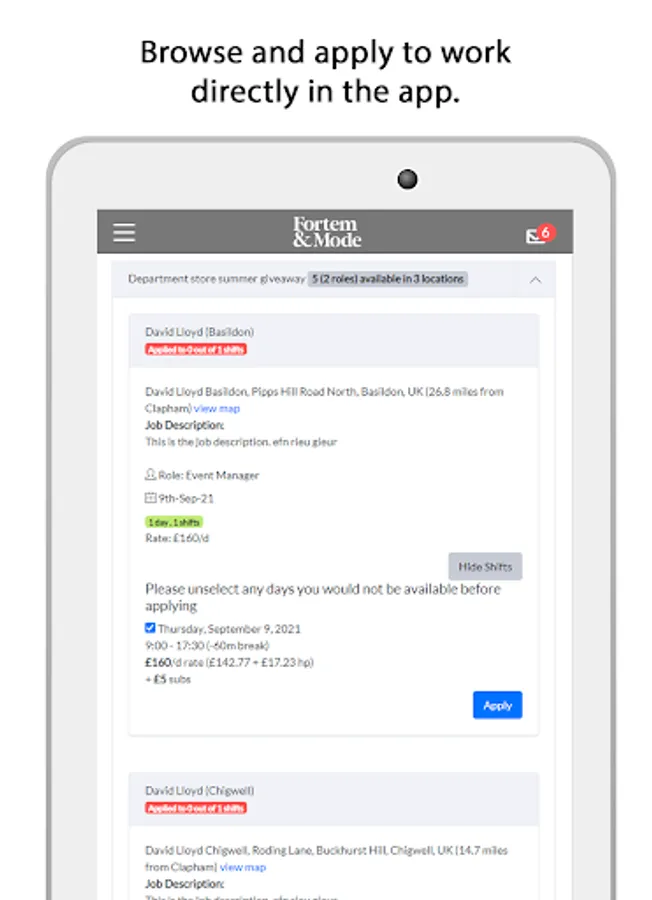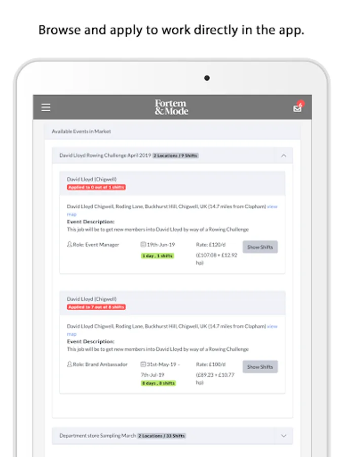 Find part-time, temp and event work in London and across the UK using the Fortem & Mode app.