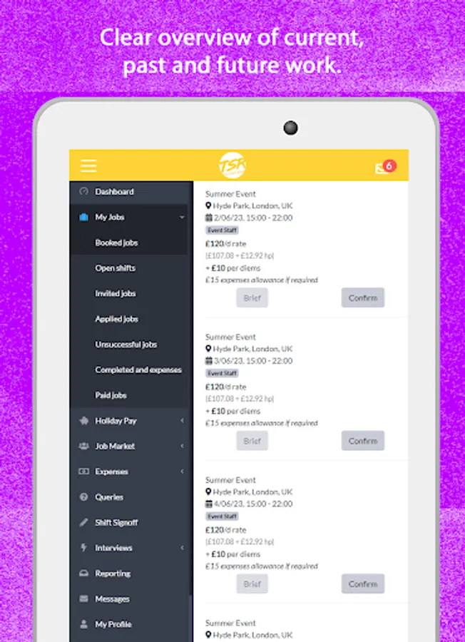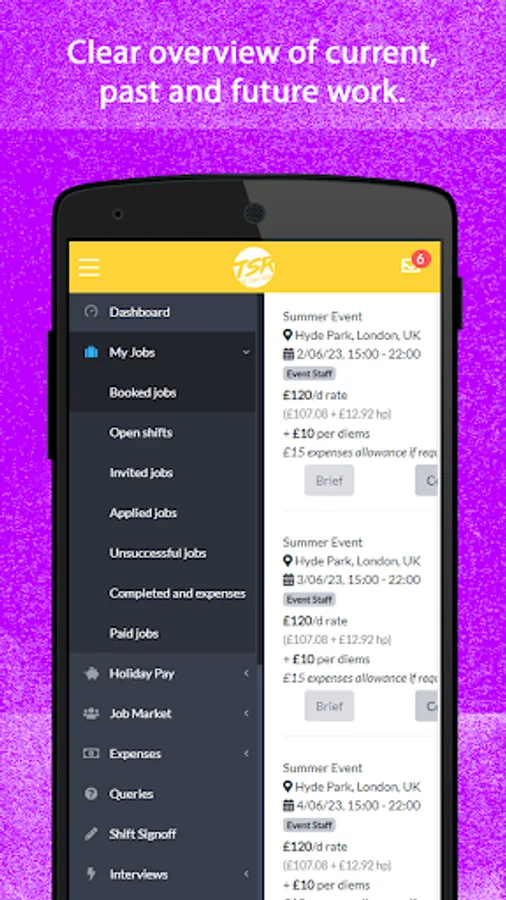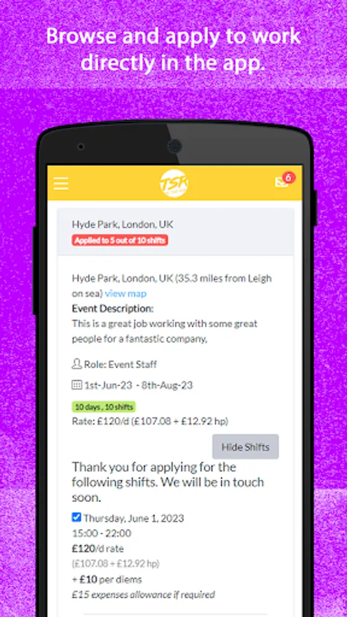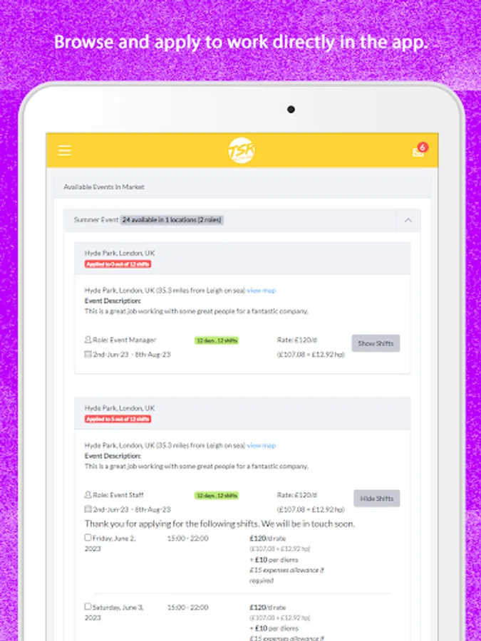 Find part-time, temp and event work in London and across the UK using TSR Staff App
