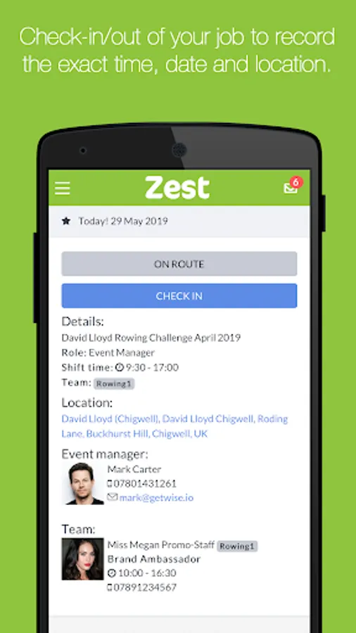 * Check in & out of shifts directly within the app