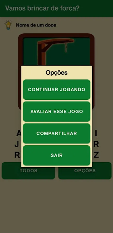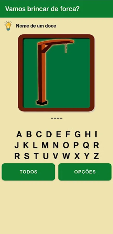 The Application, Vamos Brincar de Forca or as known: The Hangman Game is a game where the player needs to hit what the proposed word is, having as a hint the number of letters and the theme connected to the word.
