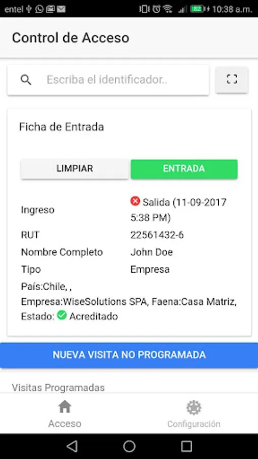 App to manage entry and exit of employees and vehicles for Wisefollow platform.