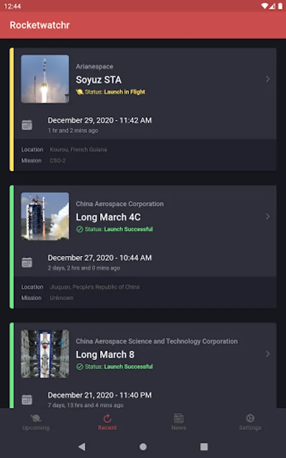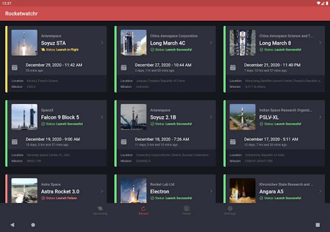 • View all upcoming launch schedules with times, status, mission information and much more.