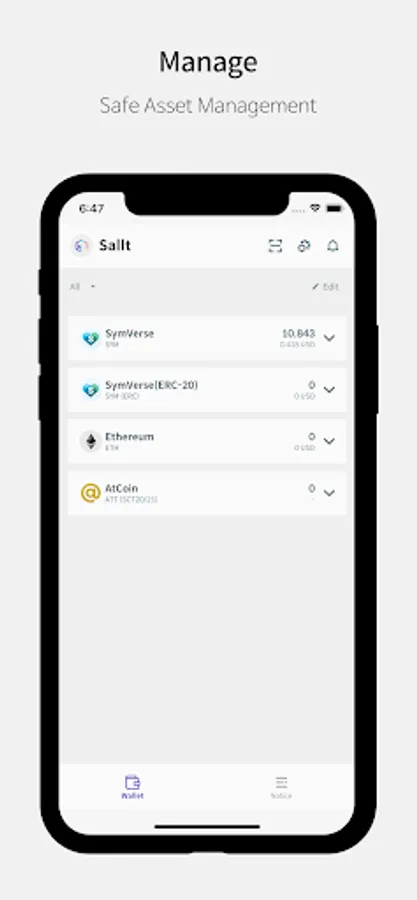 Sallt wallet uses a unique ID chain based on a self-sovereign distributed ID system in the SymVerse blockchain.